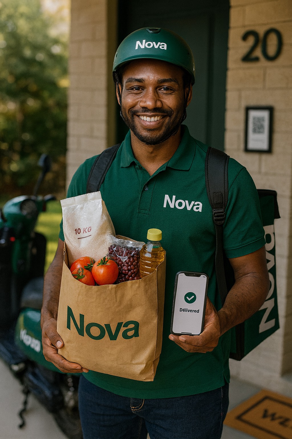 Just say: “I need milk” Nova confirms, you pay in WhatsApp, we dispatch a rider, and it’s at your door.